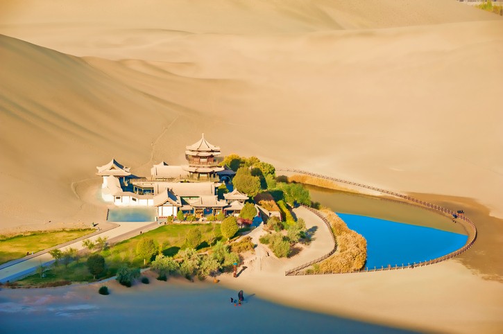 Dunhuang está bem próxima da fronteira de Gansu com Qinghai e Xinjiang e foi a